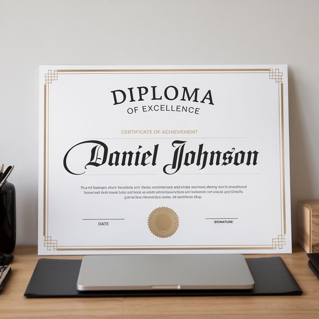 Prestigeträchtige Zertifikate für Abschlüsse. Anpassbar mit Schülernamen und Schuldetails. Ideal für Schulen, Hochschulen und Programme.