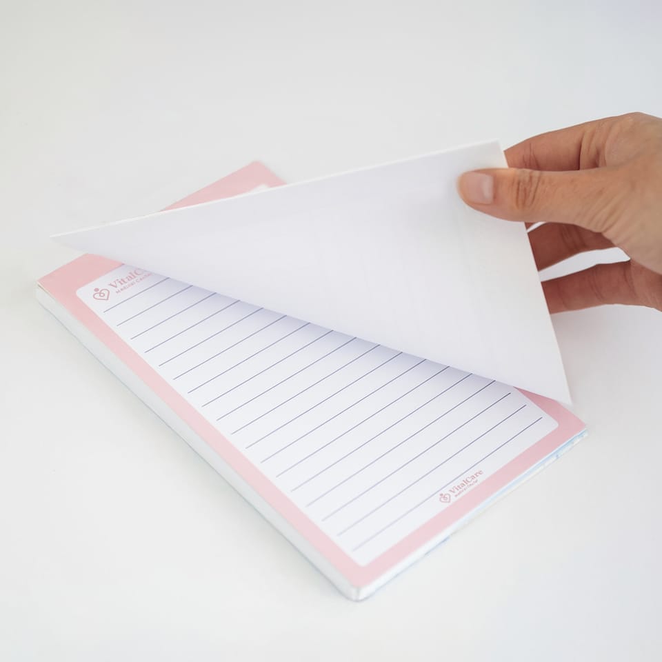 Custom tear-off notepads for convenient note-taking. Perfect for creating easy-to-tear sheets for tasks and reminders. Ideal for businesses, offices, and personal use.
