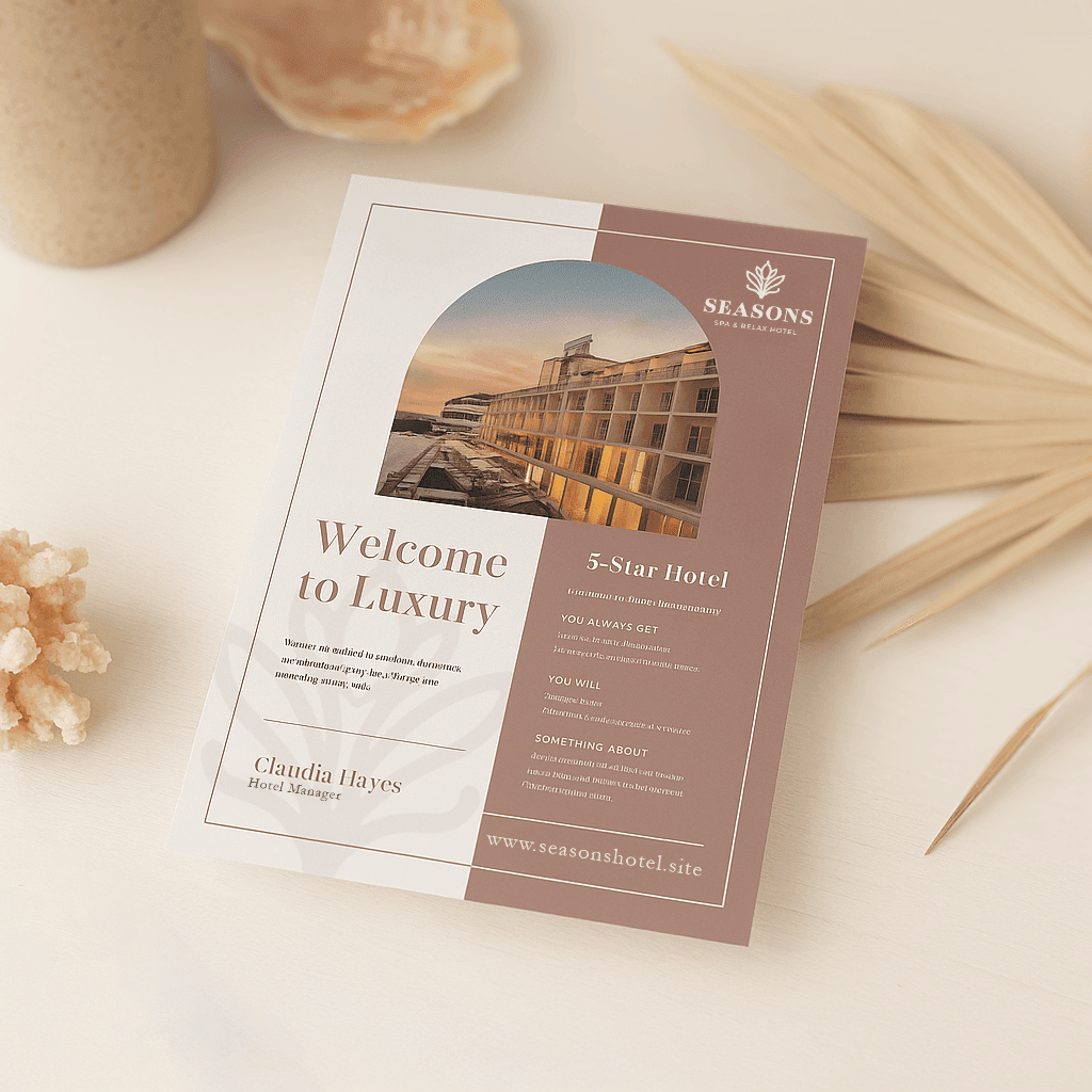 - Luxuriöse Hotelflyer zur Bewerbung von Unterkünften und Angeboten.