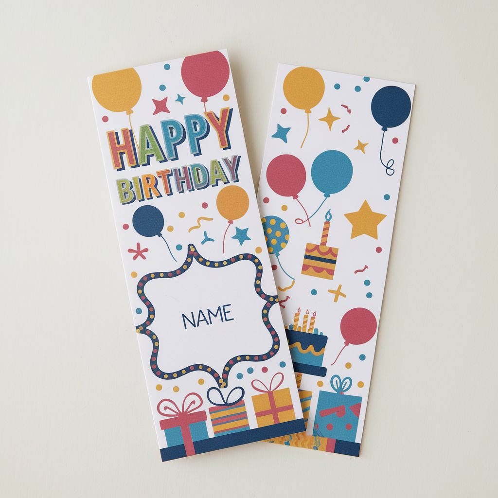 Frohe Lesezeichen für Geburtstagsfeiern. Anpassbar mit Namen, Alter und Nachrichten. Perfekt für Partygeschenke und Geschenke.