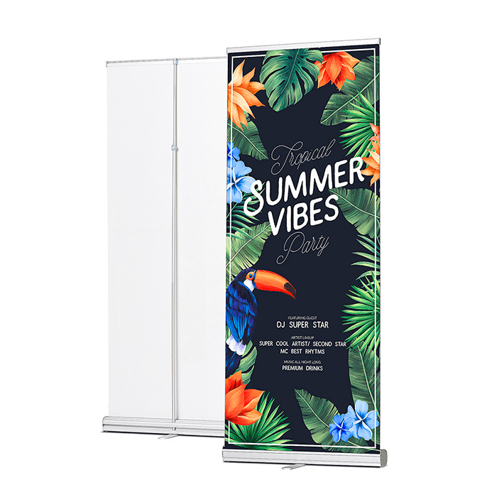 Bestellen Sie Roll-Banner Massive und heben Sie Ihre Marke hervor. Passen Sie mit einem kreativen Design an, indem Sie eine unserer Vorlagen verwenden oder Ihr eigenes Design hochladen.